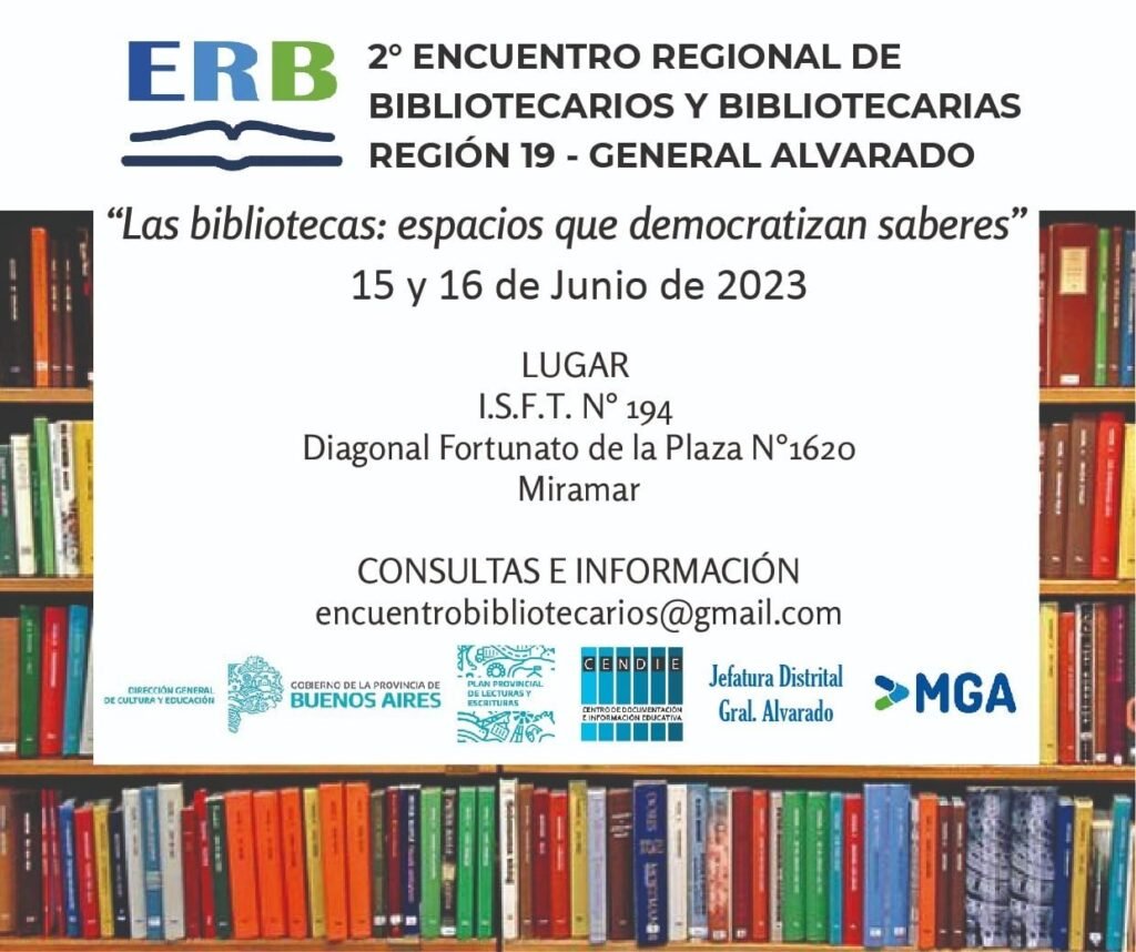Se llevará adelante los días 15 y 16 de Junio el 2° Encuentro Regional de Bibliotecarios de la Región 19 en la ciudad de Miramar (ISFT N° 194).