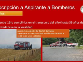 Requisitos: Tener entre 16 (o cumplirlos en el transcurso del año) hasta 39 años de edad. Tener residencia en la localidad. Presentarse en nuestro cuartel en el horario de 08:00 a 16:00 de lunes a […]