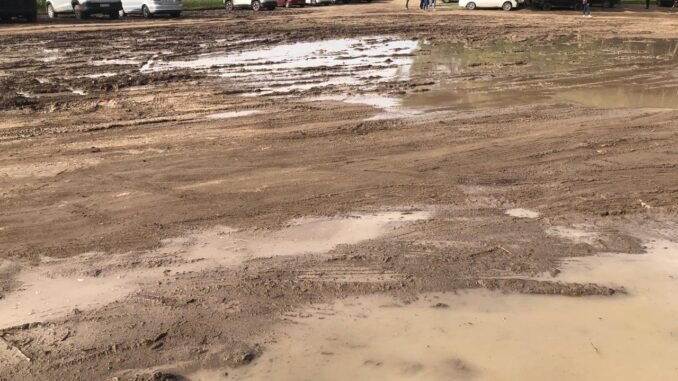 Autos estacionado a la vera de la ruta por no poder ingresar debido al mal estado de la playa de estacionamiento, bancos para descansar destruidos y un descontrol de turistas circulando por cualquier sector sin indicaciones alguna.