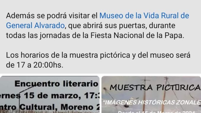 En el marco de la edición 45 de la Fiesta Nacional de la Papa, los esperamos en Comandante Nicanor Otamendi. El viernes 15 de marzo a partir de las 17,30 hs., realizaremos un encuentro literario en el Centro Cultural Dima Spósito de Parodi, en calle Moreno 2277 , de esta ciudad.