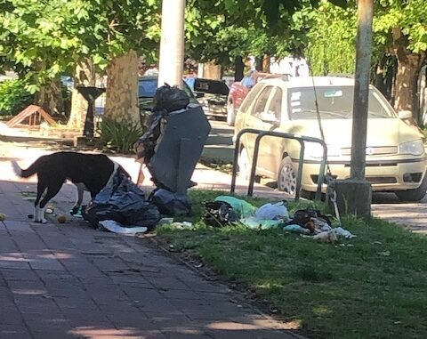Lamentablemente la suciedad está a la orden del día y ya comienzan las quejas y reclamos de los vecinos que ahora deben abonar un 150 por ciento de aumento en las tasas municipales. La fotografía es una postal patética de lo que ocurre en pleno centro, al lado de la biblioteca, perros comiendo de los restos de basura acumulados en bolsas y bolsas que no se retiran de los domicilios.