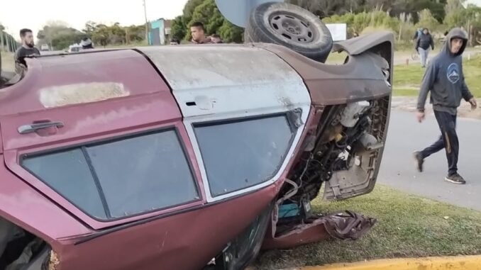 Grave accidente en el ingreso a Miramar 7 octubre, 2023 Locales, Policiales Ruta 11 y la entrada a Avenida del Mar, vuelca un vehículo tras sufrir un desperfecto mecánico. dos personas iban dentro, interviene bomberos, policía local y personal de salud.