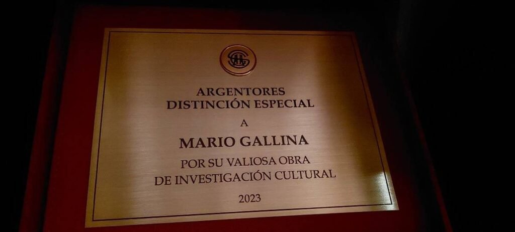 El pasado fin de semana Mario Gallina recibió una distinción especial otorgada por la prestigiosa Argentores (Sociedad General de Autores de la Argentina) por su obra de investigación cultural. Les compartimos su discurso.