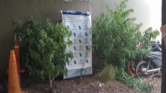 Calle Chaco y Entre Rios (Otamendi) con resultado POSITIVO, secuestro de elementos utilizados para la faena, Sustancia vegetal verduzca positivo para marihuana, con plantas peso 8,2 kgs y una planta positivo para marihuana con un peso de 1,8 kg, notificación a masculino (26) del art 60 del cpp en orden de delito de TENENCIA SIMPLE DE ESTUPEFACIENTES Y ENCUBRIMIENTO POR ABIGEATO
